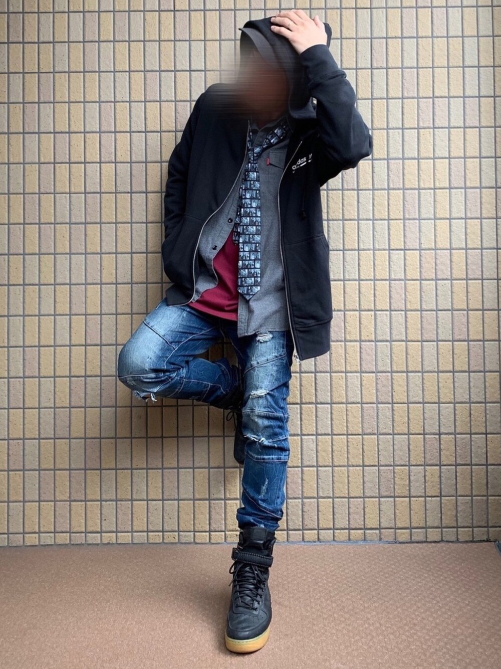 street + sporty × necktie と言いたかっただけ( ̄σ・ ̄)ホジホジ ナンダコノコーデꉂ( ᵔ̴̶̤᷄∇⃚⃘⃙̮ ᵔ̴̶̤᷅ )キ”ャ′‵′‵