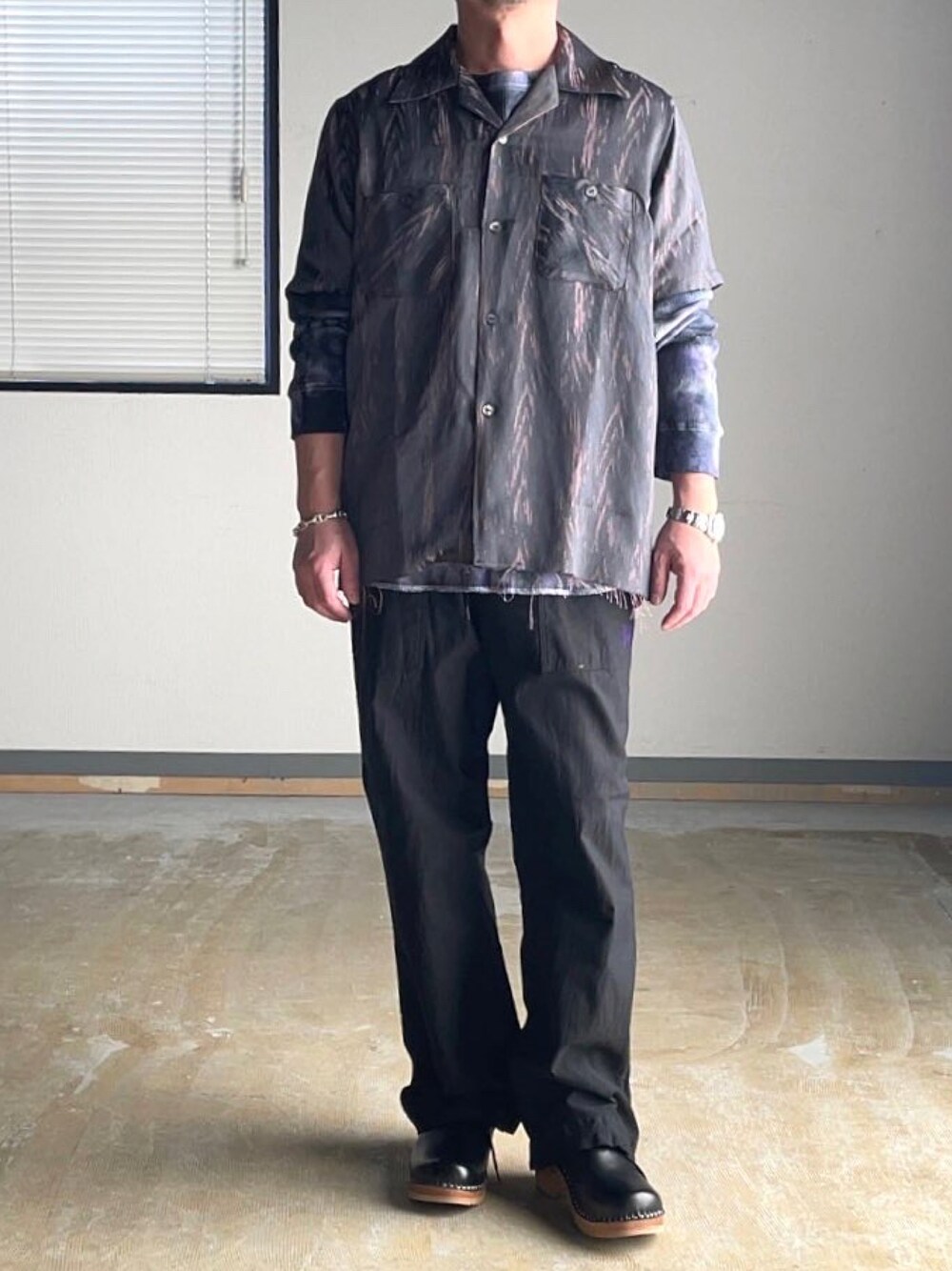 ニードルズの半袖シャツを同系色のサーマルでレイヤード。 shirt : s bottom : s sandals : 40