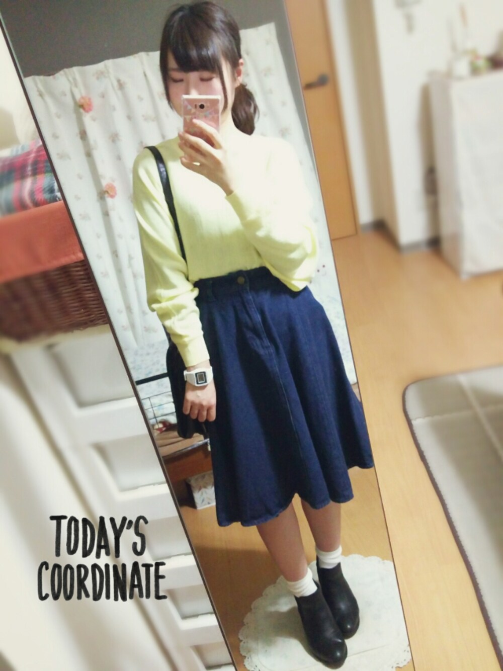 こんにちは☺ 閲覧ありがとうございます💕 更新していない間にもいいねやフォロー、嬉しいです😭💕 イエローニットをデニムフレアスカートにイン🎵 黒タイツだと重いので白靴下に* やっと靴下履ける季節になってくるー🌸 でも北海道まだまだ寒いのでね、靴下の下にストッキング履いて防寒しちゃいます。笑 生足の子見ると若いなぁーと思う🐤 相変わらずゆるゆる風邪をひいてるんですが、一昨日はオカマ声になり、とうとう昨日から声が出なくなりました😂 接客業なので、話せないと本当に何もできなくてひたすら事務仕事。 職場のみんなに迷惑かけたけど、声しぼりだすたび、みんな大爆笑してくれて逆にホッとしました。笑 早く治します!☺☺ では、また~🙋❤