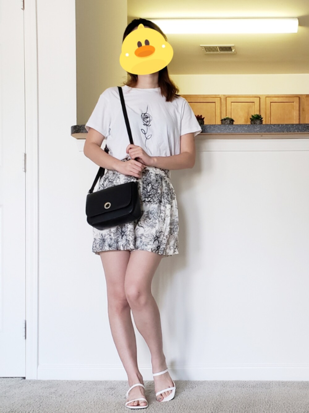 ホワイト系のTシャツ/カットソー、その他のカーゴパンツ、ホワイト系のサンダルを着用したレディースの秋コーディネートの1枚目の写真