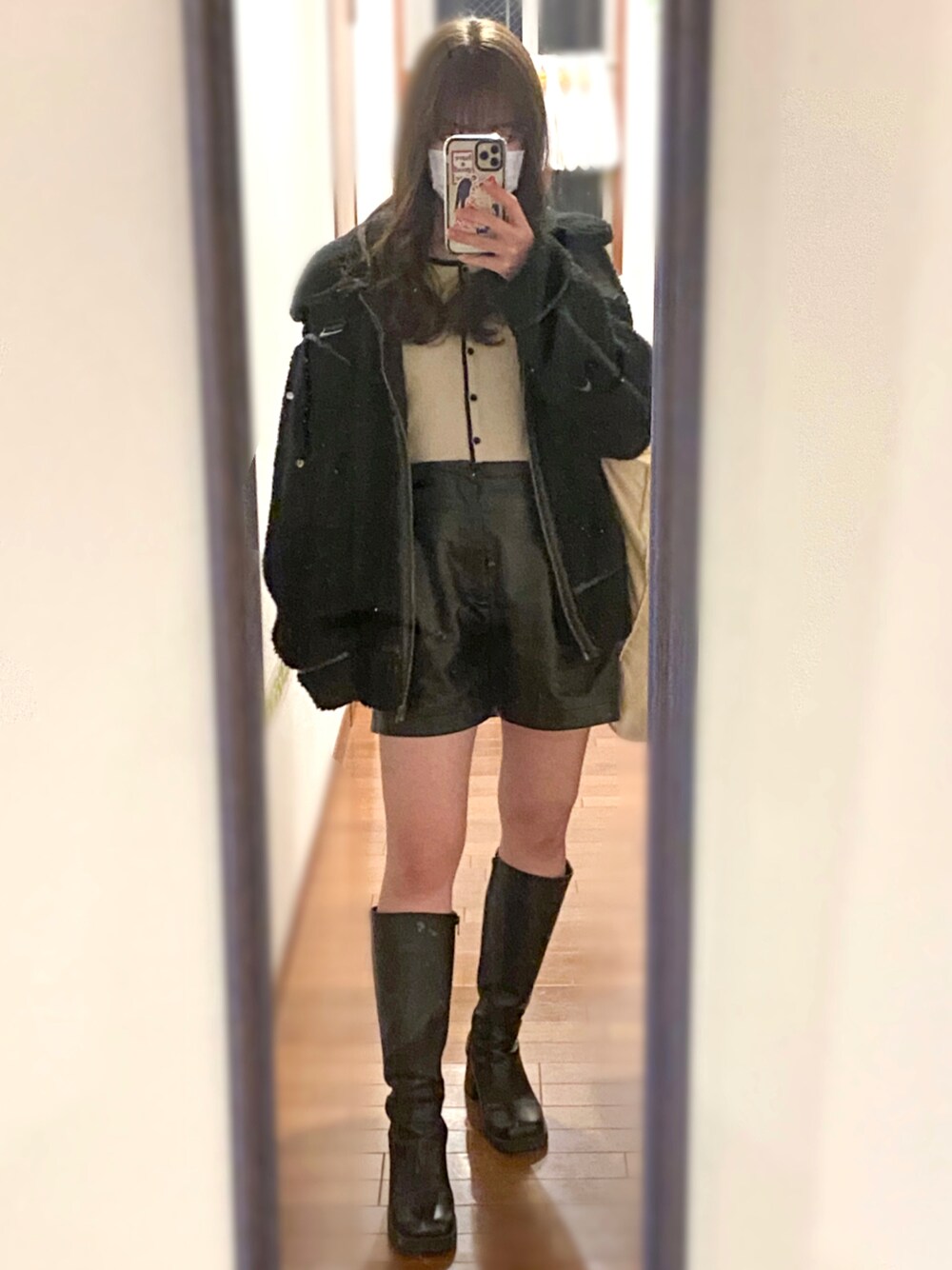 momo∨̈のムートンコート「WEGO/フライトボアジップブルゾン」を使ったコーディネート