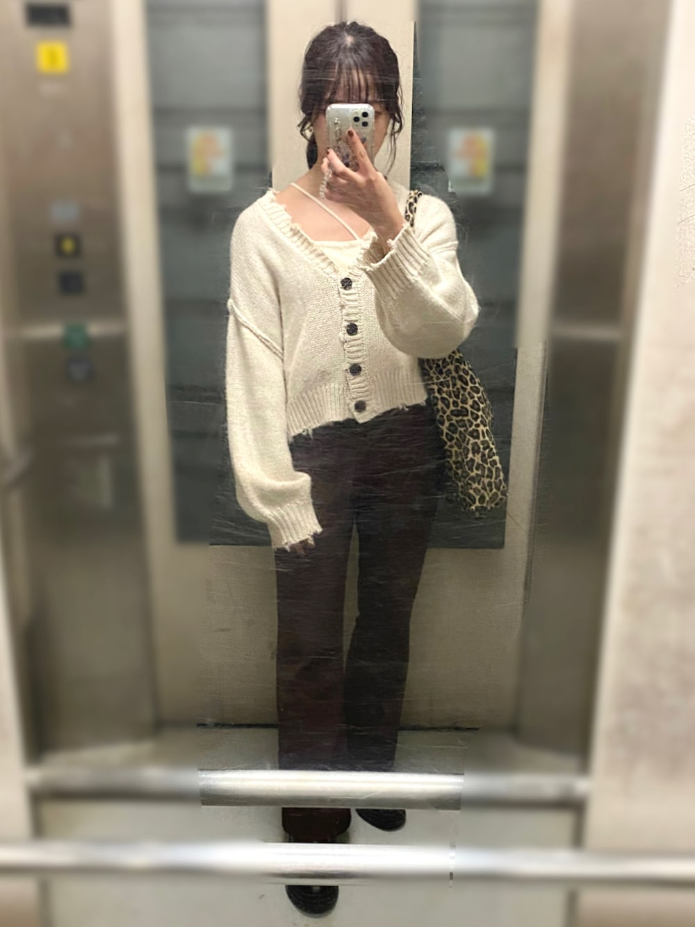momo∨̈のカーディガン/ボレロ「ブロークンVネックショートカーディガン」を使ったコーディネート
