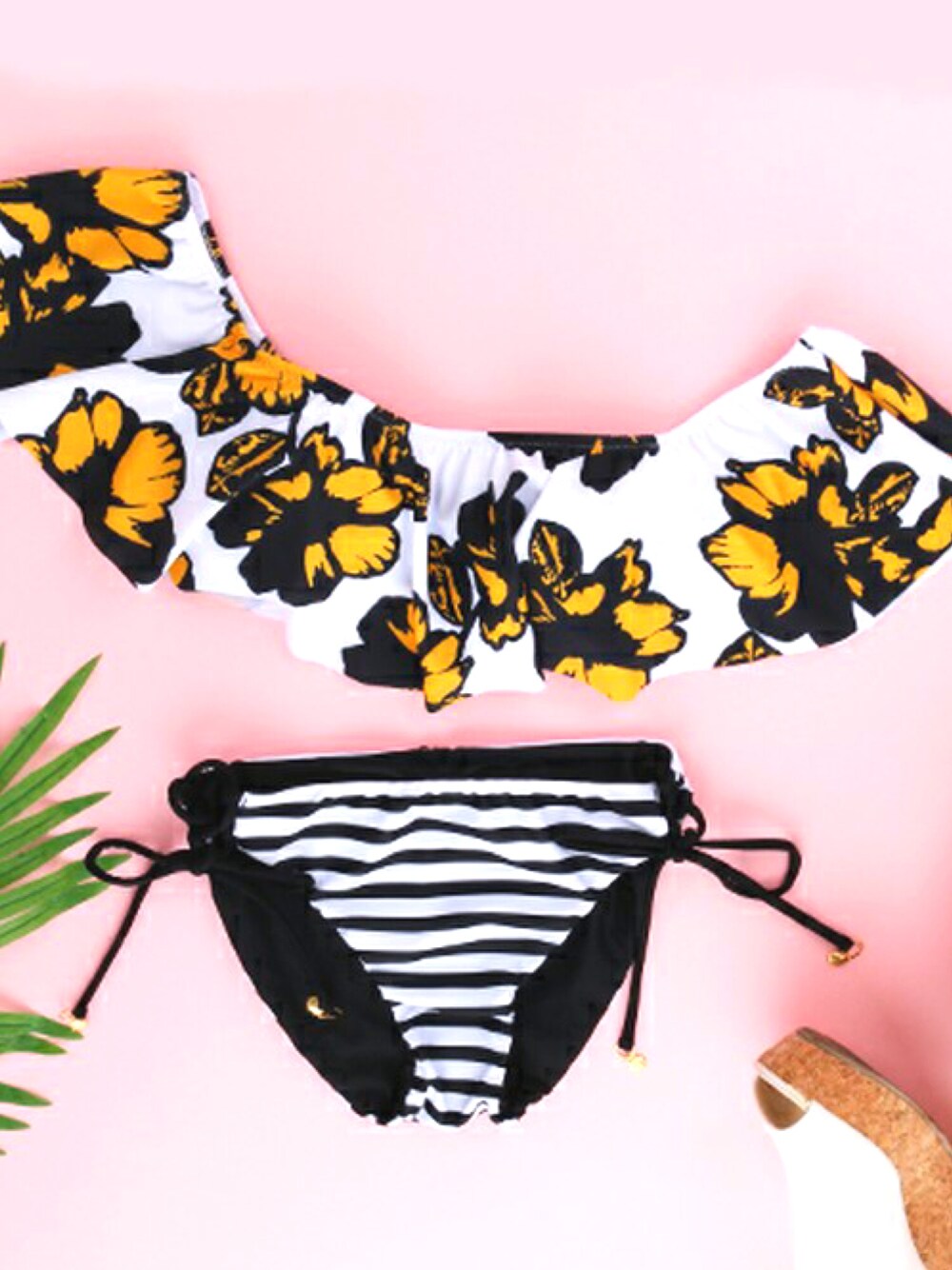 PEAK&PINEプレスの水着「Riberce|花柄オフショルダー×ボーダー・無地リバーシブルビキニ水着【9M/11Lサイズ】」を使ったコーディネート