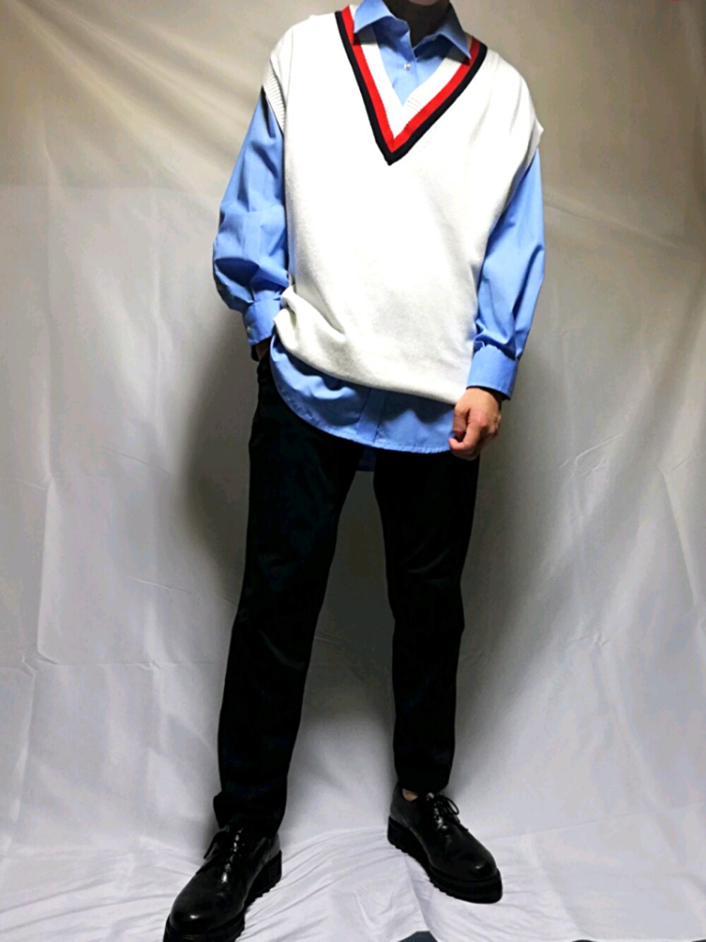 学生服風コーデ! 青のシャツって意外と無いのよなー この投稿を見てくださってありがとうございます! 少しでもいいと思ったらぜひいいねやフォローをお願いします! では✋(◉ ω ◉`)