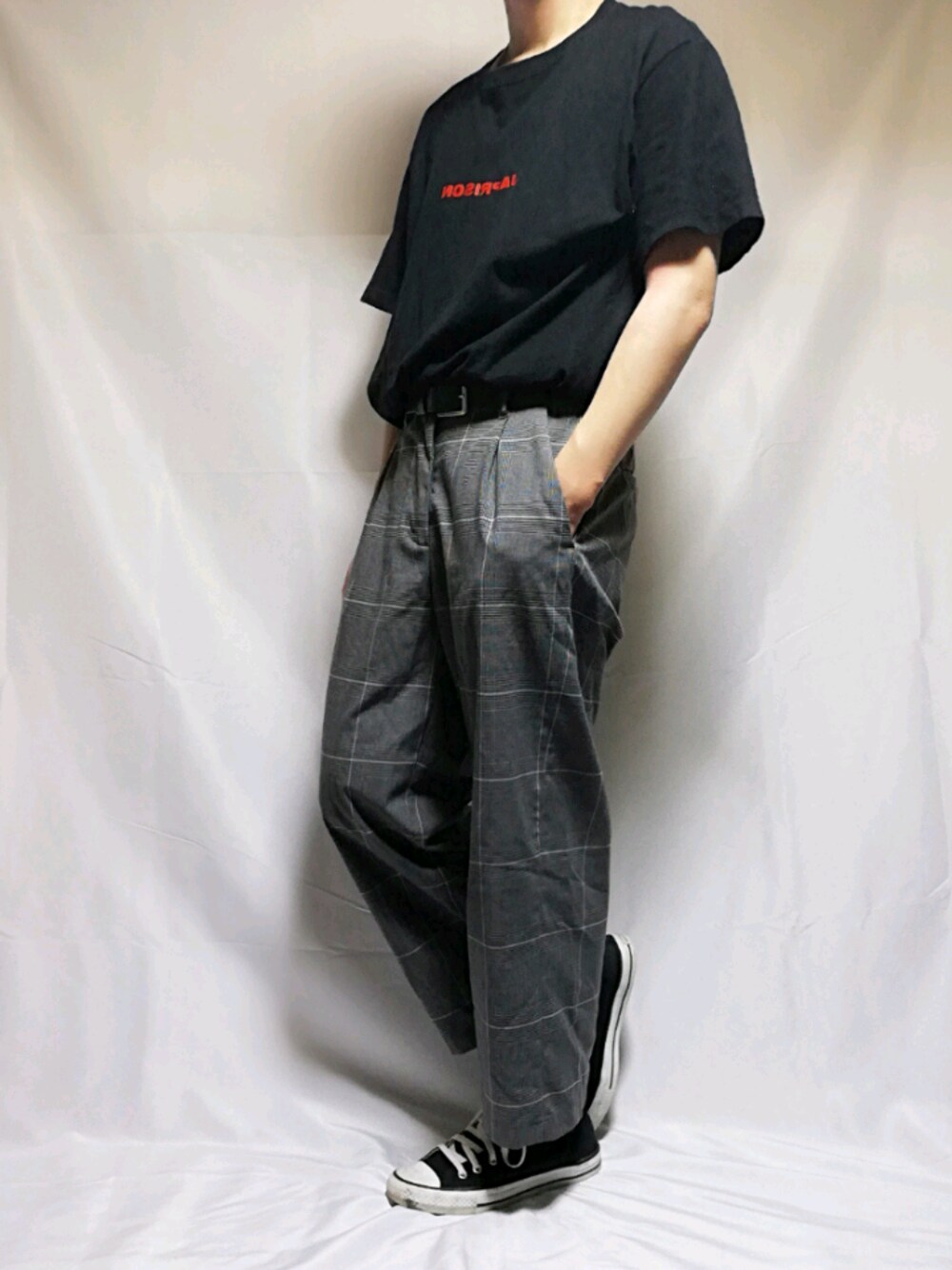 おのスラックス「ウールタッチグレンチェックワイドパンツ/852089」を使ったコーディネート