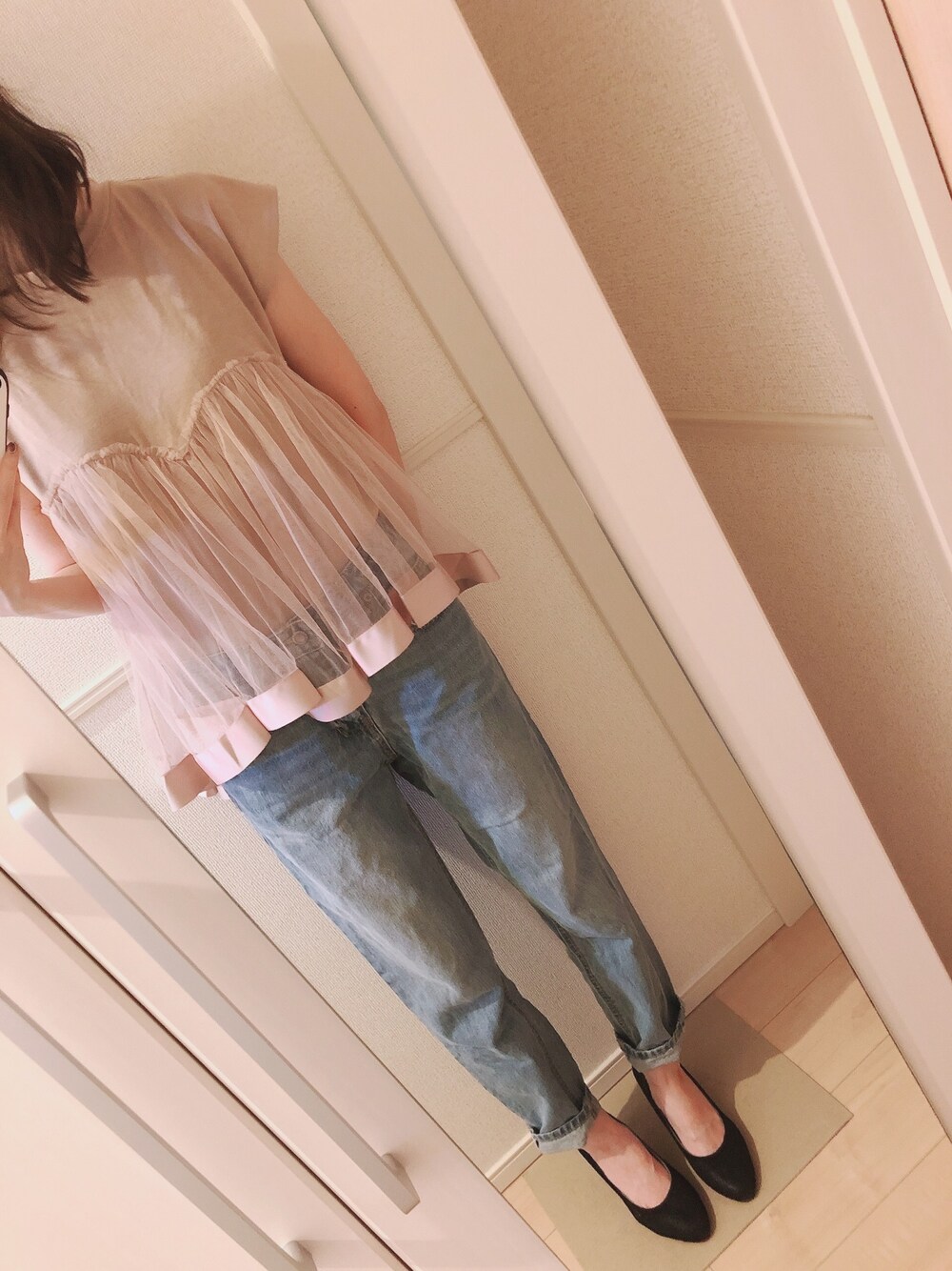 すぬーぴーの隣🍎のTシャツ/カットソー「リボンテープ×チュールレースのカットソー」を使ったコーディネート