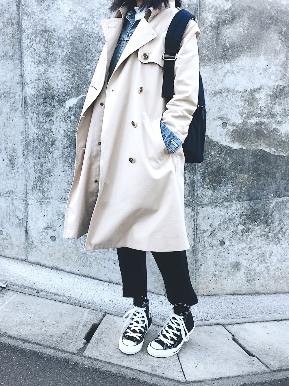トレンチコートにGジャンを合わせてみました♡ Gジャンはユナイテッドアローズ パンツはGU