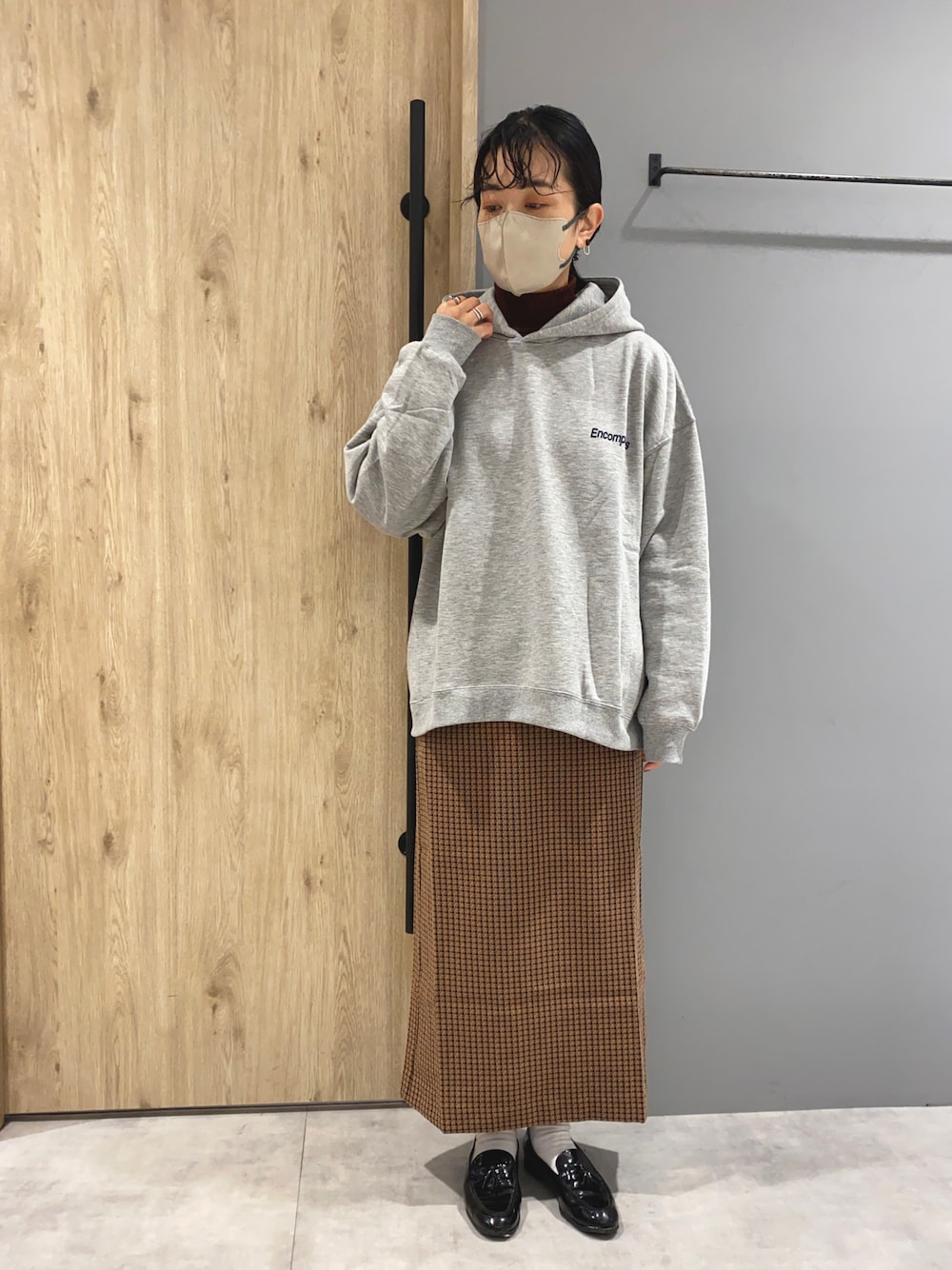 おはようございます☀︎ ご覧頂きありがとうございます⛄️ 今日の出勤コーデです‼︎ パーカーはゆったり目が好きなので、メンズをチョイス☺️ それにチェックスカートを合わせる事でメンズ感が出過ぎる事なく着れます‼︎ (スカートは去年のメランクルージュの物です) パーカーはバックプリントも入ってるので後ろ姿もいい感じです◎