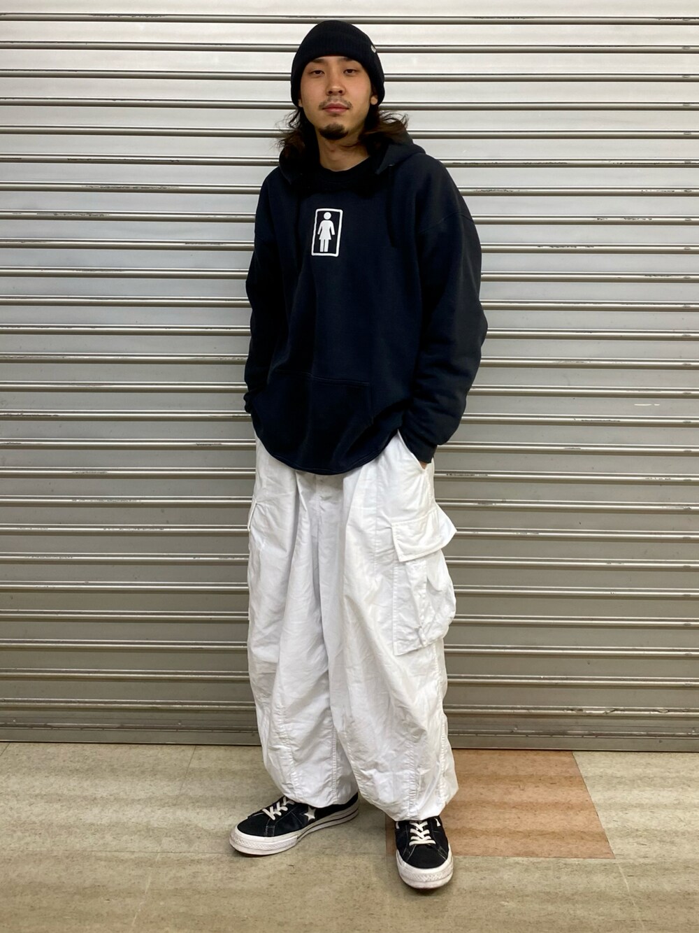 GIRLの定番ロゴデザインがプリントされた カッコ良すぎる1着を来て シャッターの前でぽちりでイケイケ。