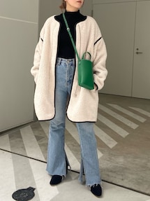 pearn0のダウンジャケット/コート「2wayリバーシブル/ノーカラーレザーボアジャケット」を使ったコーディネート
