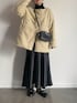 ボアジャケットにタートルネックニットにサテンのロングスカートにローファー. ノーカラーはタートルネックとの相性抜群◎