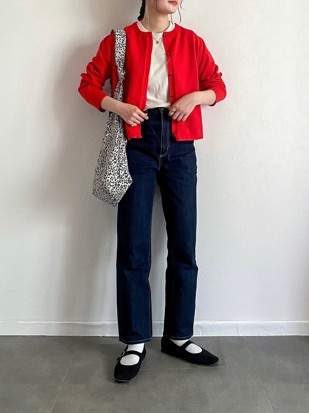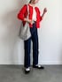 赤けカーディガンにデニムパンツ. feepurの スポンディッシュコンパクトカーディガン. 軽くて柔らかい素材で 長いシーズンで着ることができます◎ 絶妙な丈感でどんなコーデにも合わせられます. パキッとたした赤もお気に入り🍎