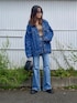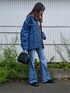 デニムジャケットにフレアデニム.