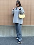 グレーのオーバーサイズのニットにグレーのスラックス. ブラックのハイネックニットとニューバランスで 締まった印象に◎
