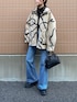 ボアジャケットにタートルネックにフレアデニム.