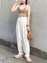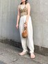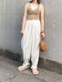 タンクトップにニットビスチェにスラックス.