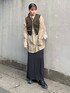 コーデュロイのベストにシアーシャツにロングスカート.