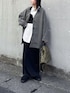 pearn0のノーカラーコート「ノーカラーカットメルトンミドルコート」を使ったコーディネート