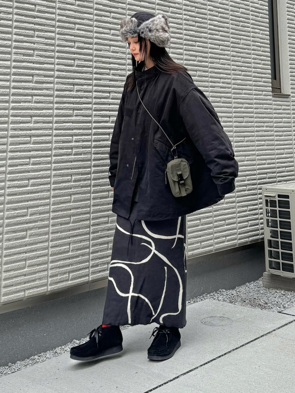 モッズコートにロングスカートの大人カジュアル. ずっと欲しかったもこもこハット ついに購入しました🫶