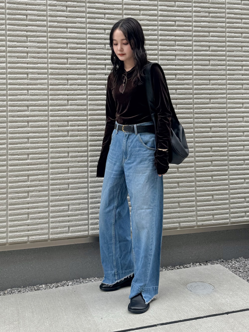 着用コーデ:6件pearn0のTシャツ/カットソー「<H>ベロアバックスリットロングスリーブ」を使ったコーディネート