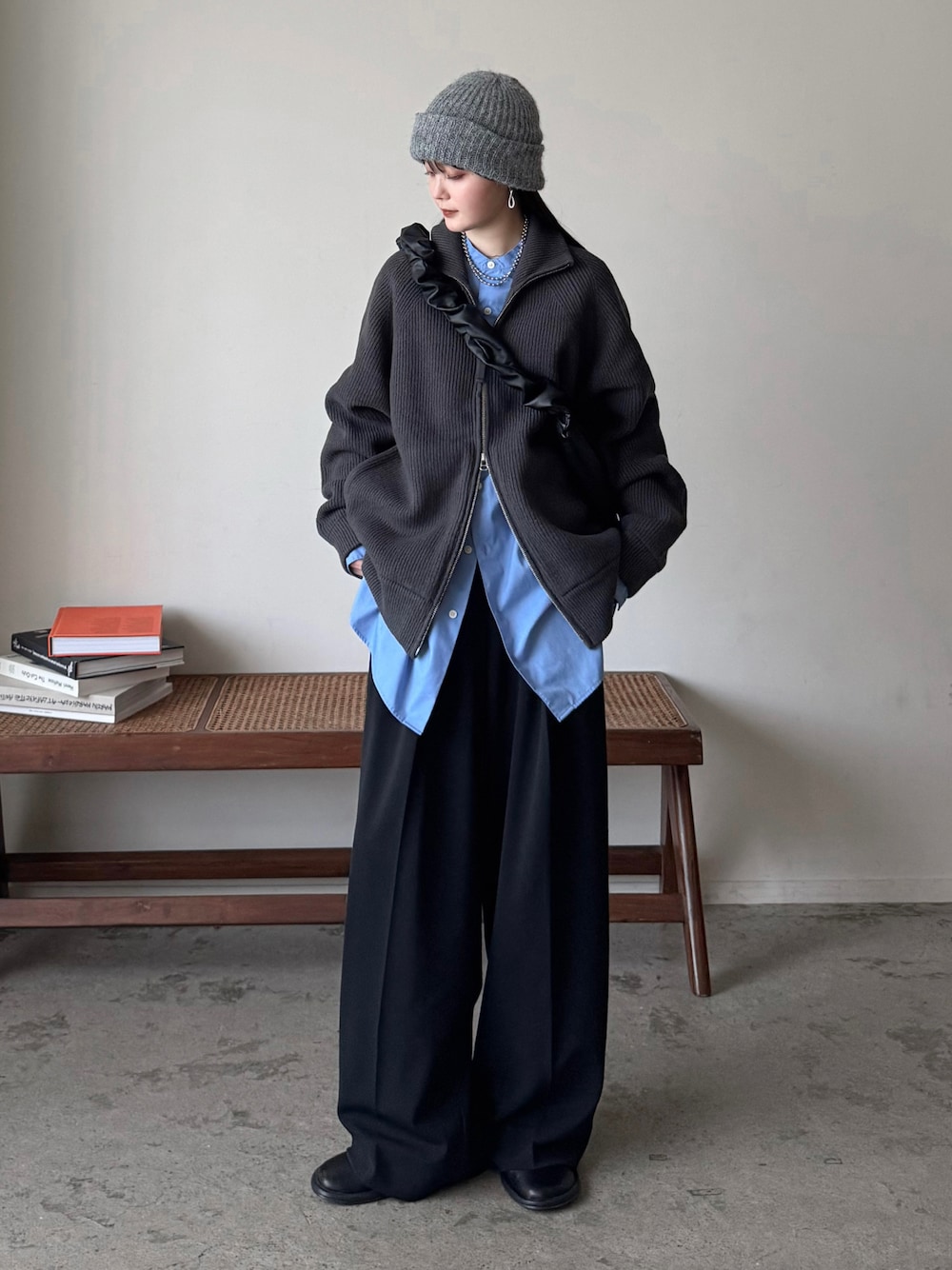 モノトーンにブルーの差し色が好き🫶