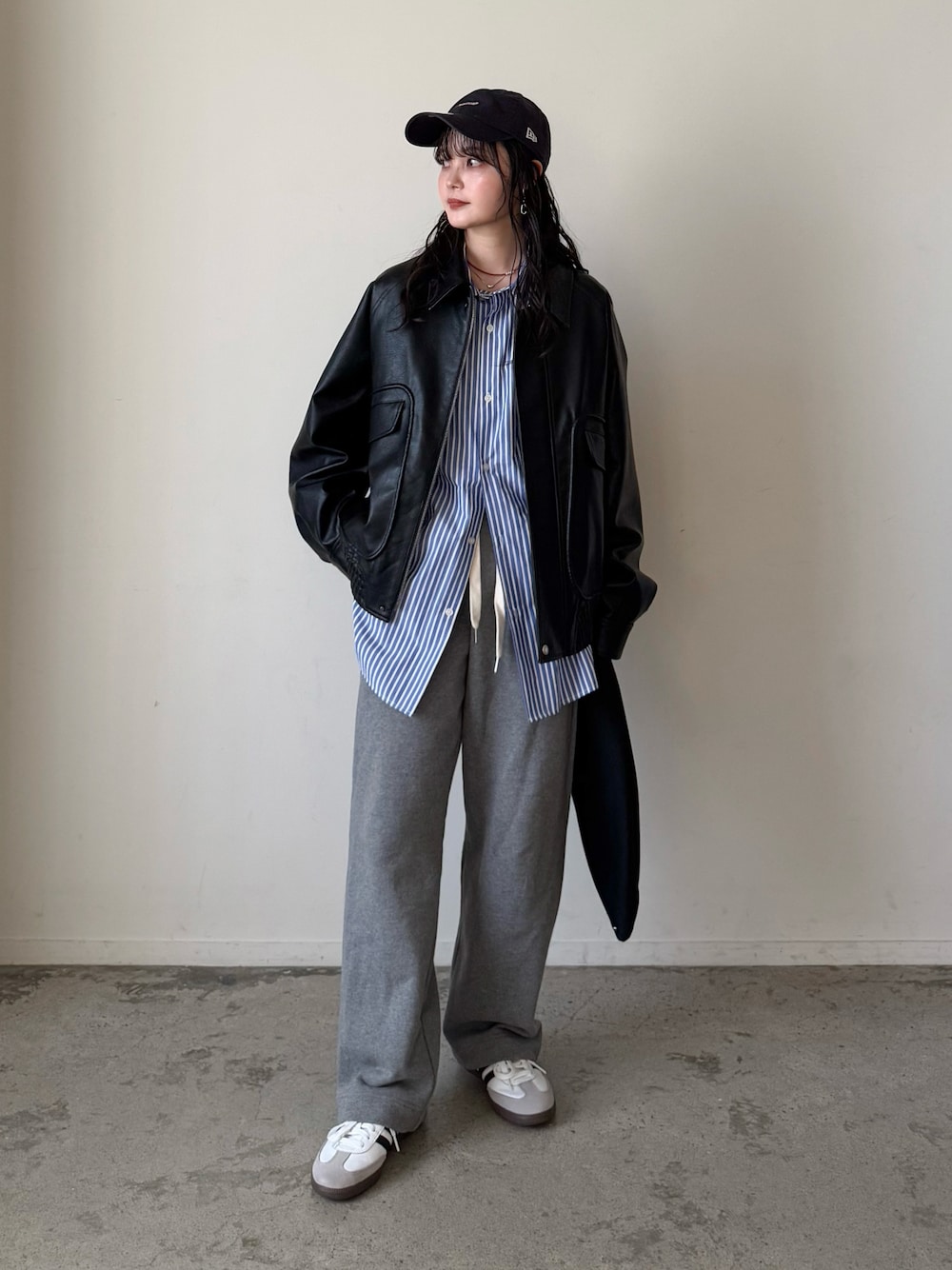 フェイクレザージャケットの着回し.
