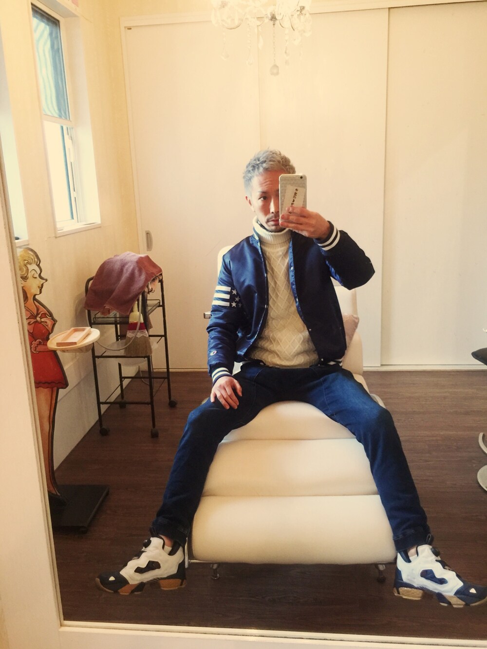 ハイネックのインナーにはUNIQLOのシャツ 雪がちらついてきました❄︎