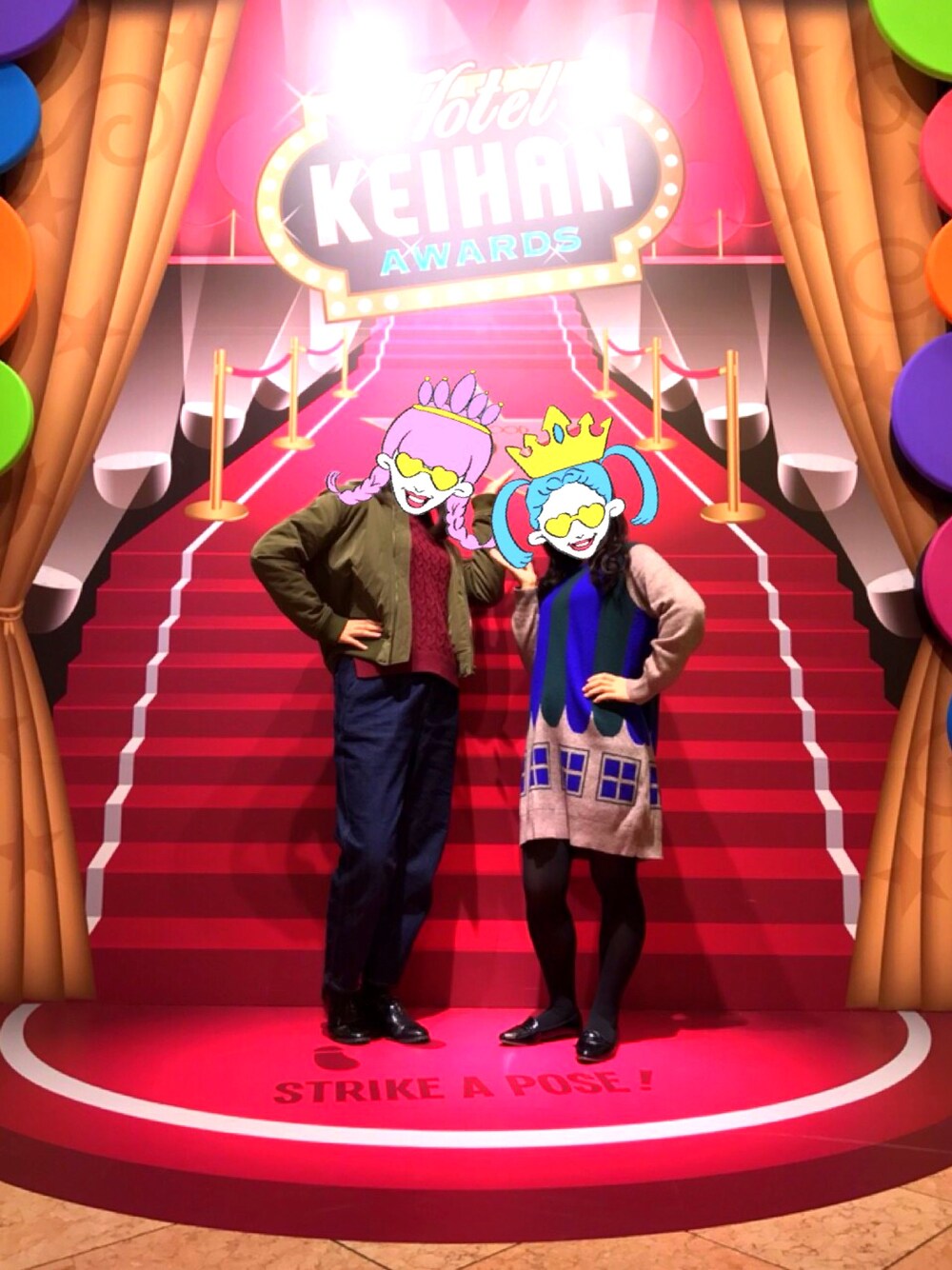 ニットワンピ / graniph ホテル京阪ユニバーサルシティに泊まった時にあったフォトスポットにて。 手をかざすところがあって、そこに手を置くとミラーボールが回って音楽が流れて、何かの授賞式みたいで豪華だった✴︎
