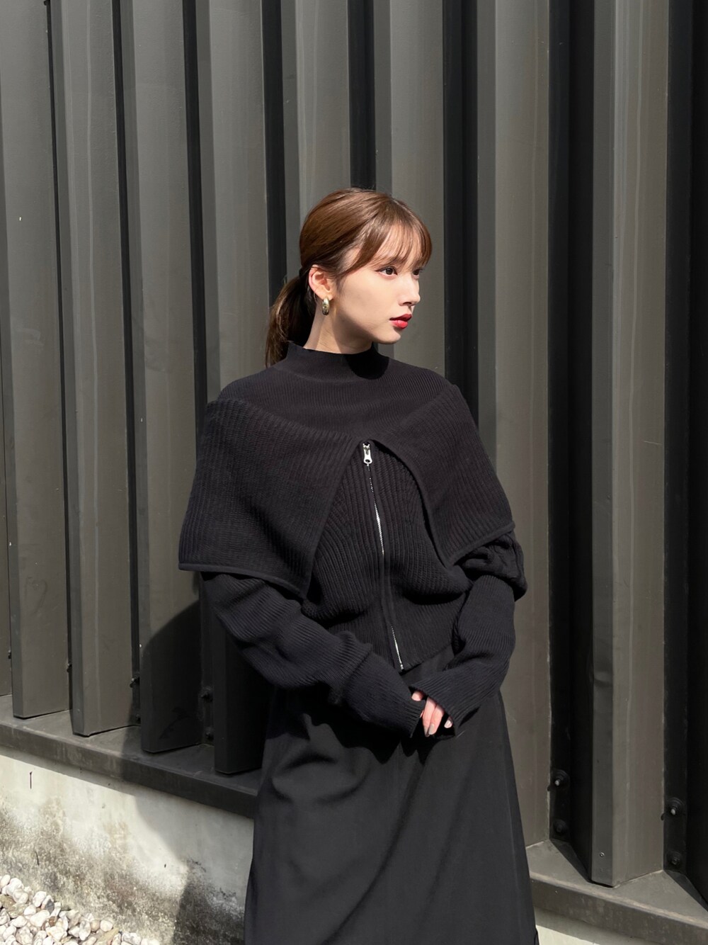 ブラック系のニット/セーターを着用したレディースの秋コーディネートの1枚目の写真