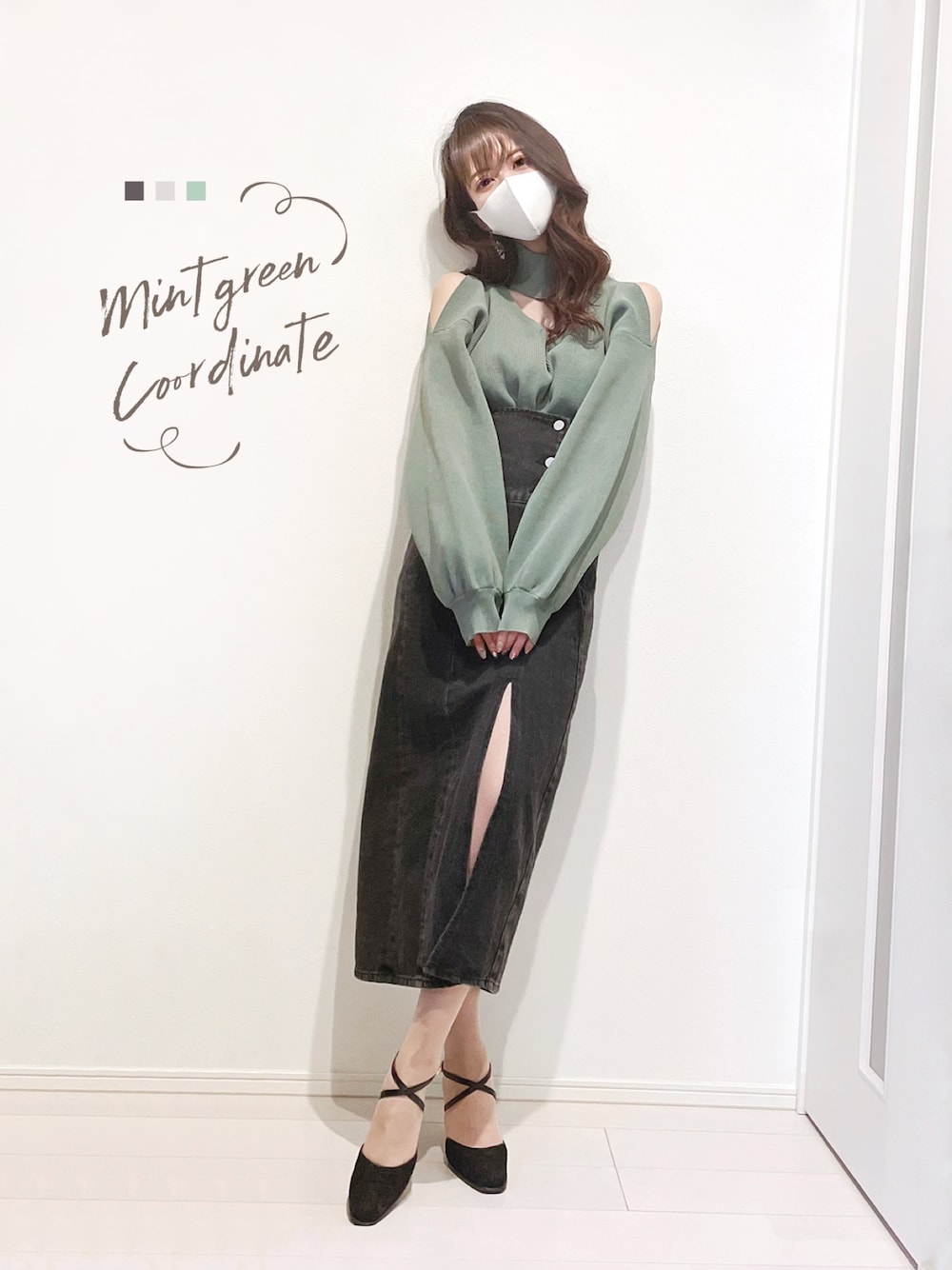 デコルテと肩の肌見せで 着膨れしない優秀ニット。 ミントグリーンかわいい🪴