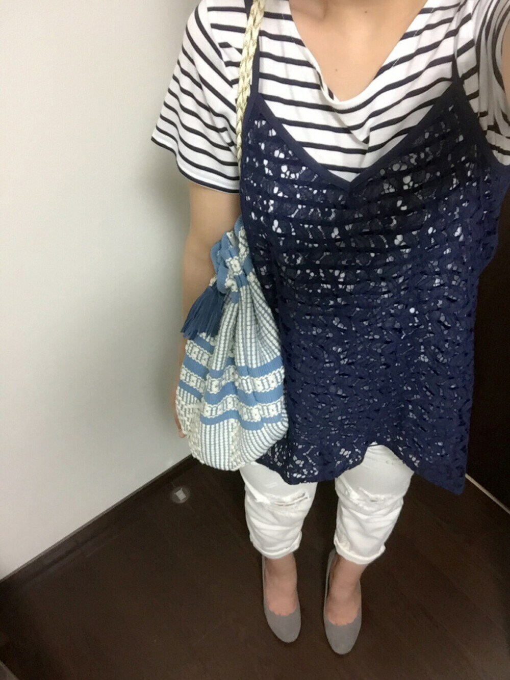 ふくちゃんのその他トップス「◆レースキャミソール+ボーダーカットソーセット」を使ったコーディネート