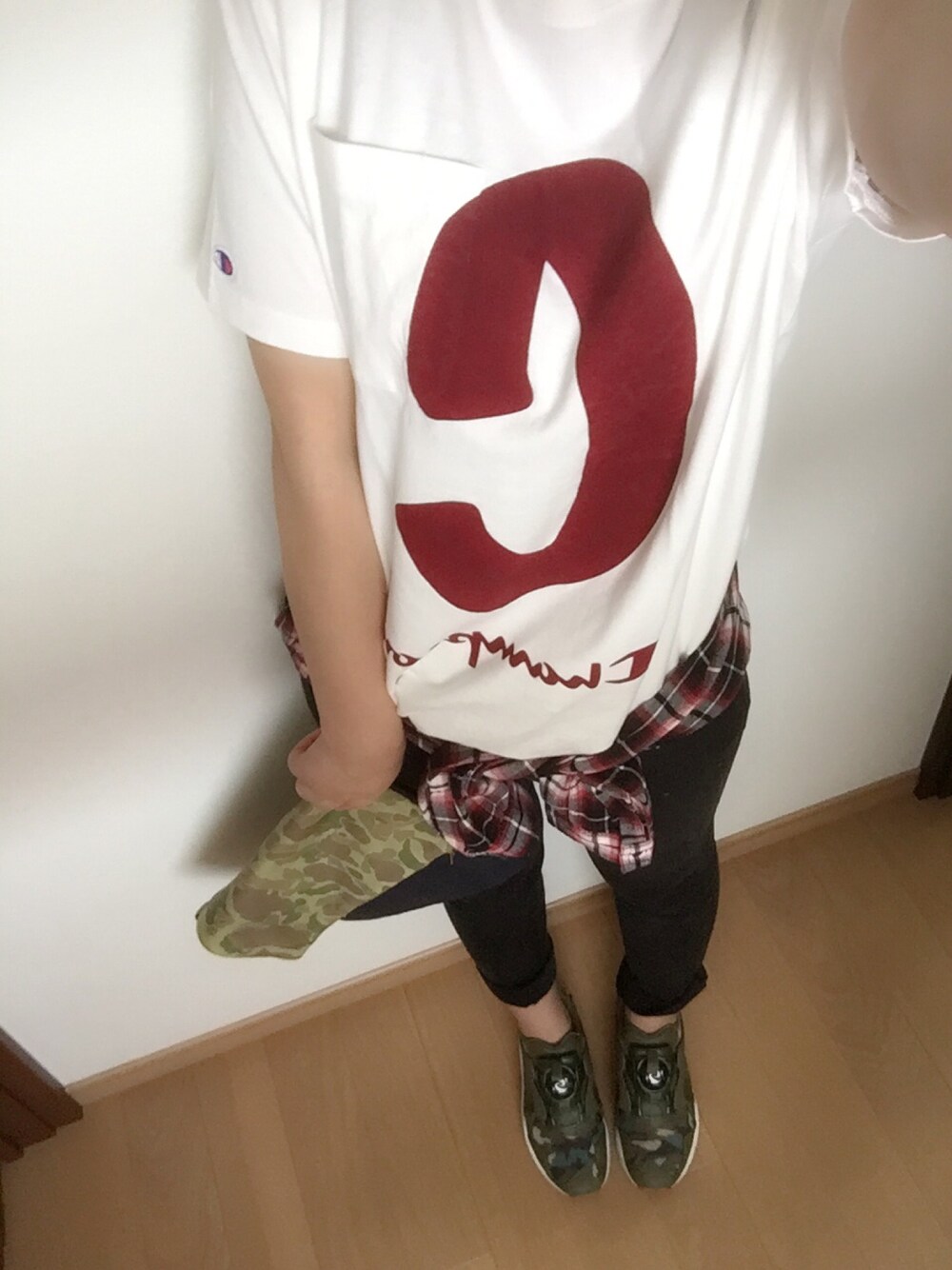 こんにちは😍 見に来てくださった皆様 ありがとうございます! 欲しかったチャンピオンTシャツ 今日とどいたのでさっそくアップしました(笑) このTシャツ、KIDSの160㌢サイズ! 162㌢のわたしの身長でも丈は お尻が隠れるくらい😵∑ サイズぴったりです👐🏻✨✨✨ コーデ的には・・・・・ Tシャツ&バッグ→チャンピオン バッグ&スニーカー→カモフラ っていう感じに隠れ統一感出してみました🙈💕