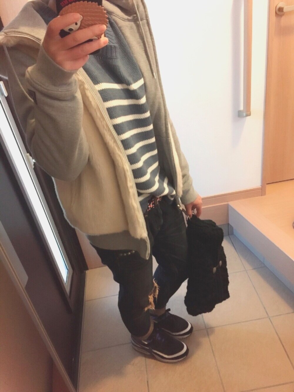こんばんは😊✨ 見に来てくださった皆様 ありがとうございます! 久しぶりにスニーカーはきました👍 やっぱハイテクスニーカーは はくだけでちょっと、オシャレっぽく 見えるから、素晴らしい👏✨✨ でも、寒いのにダメージデニムは きつかった(笑)😅💦