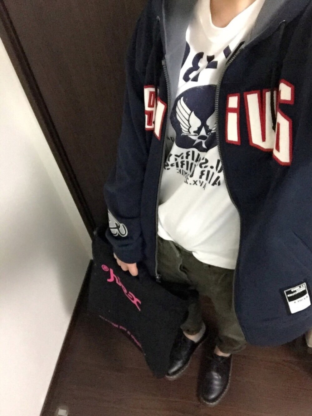こんばんは😊✨ 見に来てくださった皆様 ありがとうございます🌸 だ~~~いすきAVIREXをたくさん 使った今日のコーデ💖 パーカーは、メンズのLサイズで オーバーサイズ💓 ゆるっとダボッとパーカー! 大好物です😝(笑) ネイビーとカーキの相性もばっちりです😘