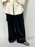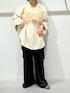 厚手で保温性があるのでアウターとして着ていただけるシャツです!中にも着こめるサイズ感と、上にも羽織れるすっきしたデザインです!ベロアのパンツはトレンド感がでます。