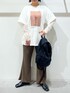 asano(KBF 名古屋パルコ)のTシャツ/カットソー「ピンタックフォトプリントTEE」を使ったコーディネート