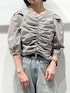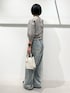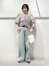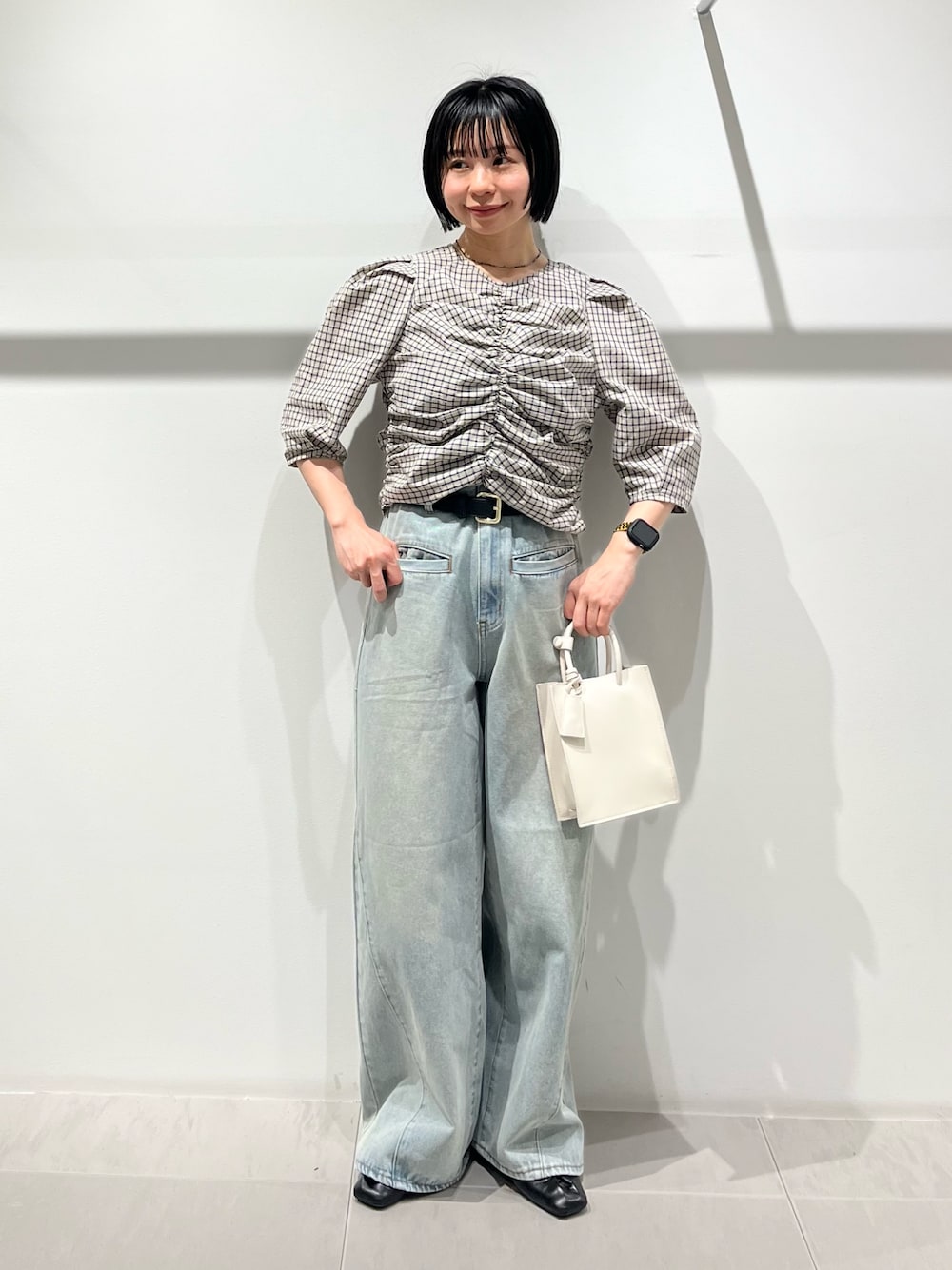 157センチ 骨格ウェーブ イエベ春 ⚪︎フロントギャザーコンパクトブラウス ギャザーが華やかです。ベージュ×ネイビーのレトロな色合いが可愛いです! ⚪︎WIDEレッグアジャストデニム トップスのベージュと同じトーンでまとめやすいです!