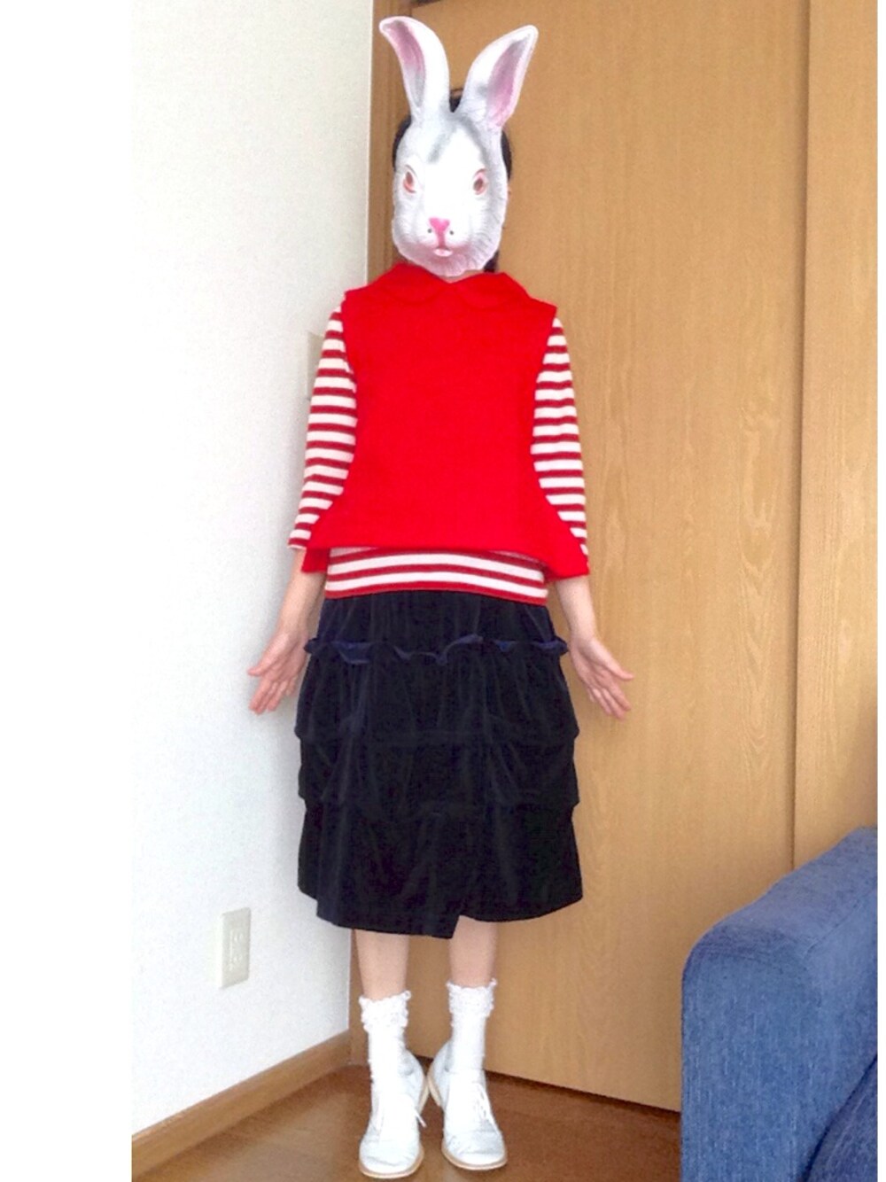冬と春の狭間! 上は七分袖だけど、下はベロア素材! どっちやねーん! ボーダー&ベスト: COMME des GARCONS スカート: tricot COMME des GARCONS