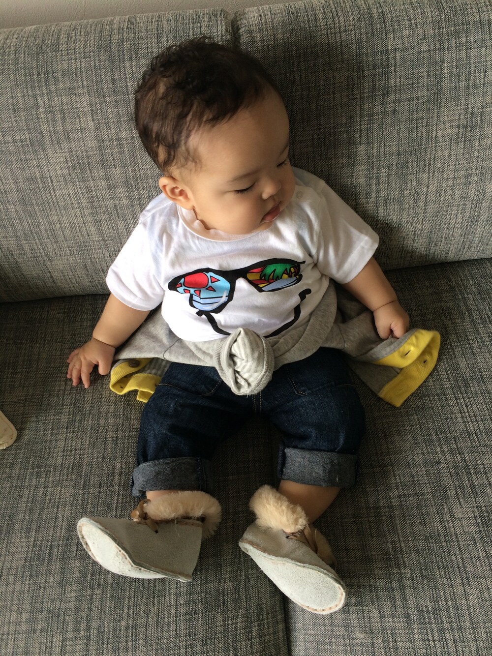 友達からニュージーランドのお土産で可愛いムートンシューズもらったので イメージは夏のニセサーファー♡ もちろん、ムートンはすぐに脱いでポーイされましたっ