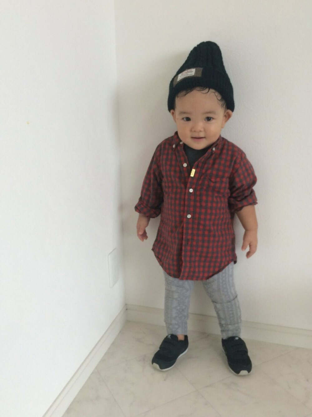 1歳ラストコーデになるかなぁ 仕事復帰してからなかなかコーデとれないですが、マイペースに続けていけたらなぁ 代わり映えしないコーデですが… 超大きいサイズのシャツもオーバサイズって思えば可愛い♡ 秋コーデさせたから、息子汗だくです笑