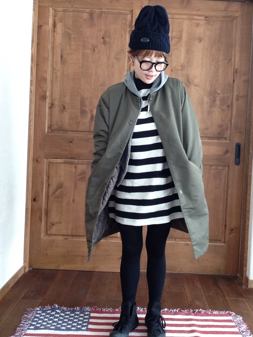 朝起きたら雪積もってたからあったかくして、雪はね。した格好。くるまのまわりだけだから簡単に~でも靴は長靴‹‹\( ´・ш・)/››はきかえました。