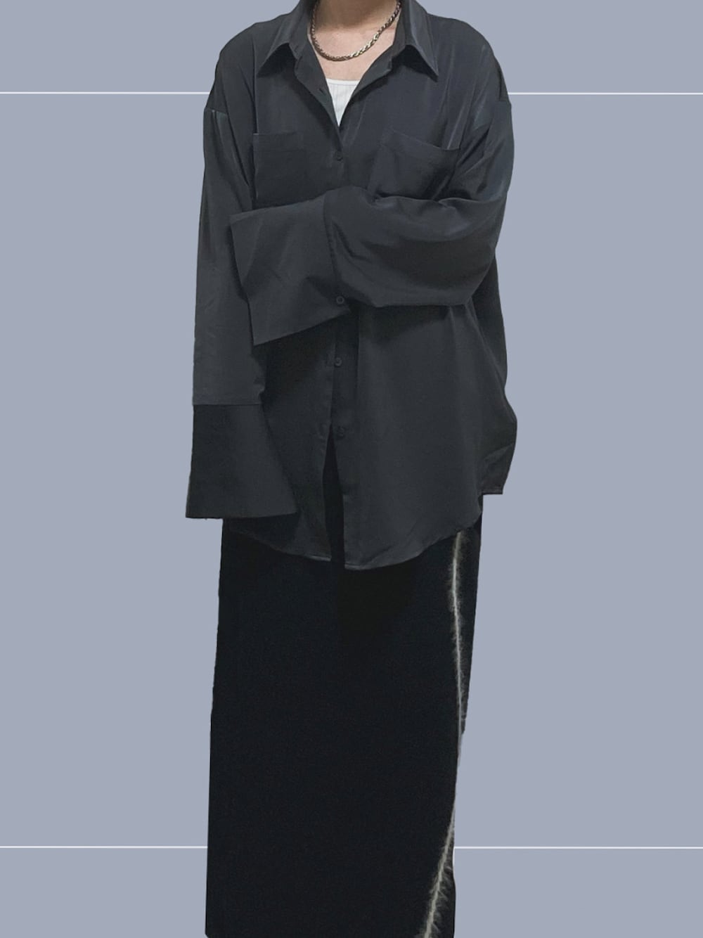 Mewのシャツ/ブラウス「ビッグカフスサテンオーバーシャツ」を使ったコーディネート