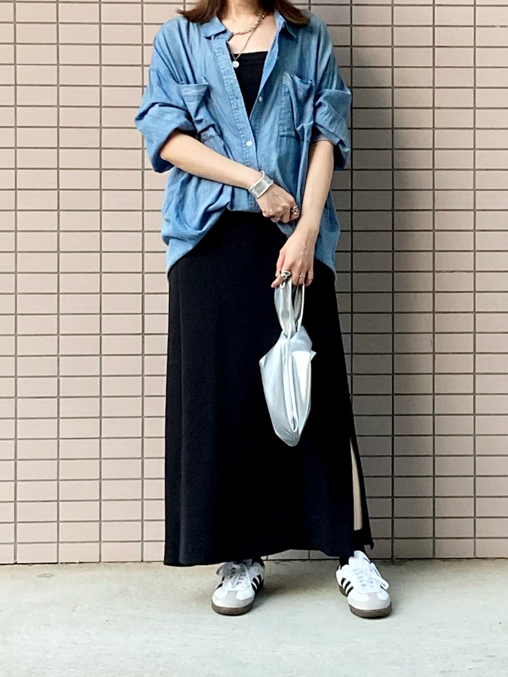 Mewのシャツ/ブラウス「Dignite Collier 袖リブシアーデニムスナップボタン付シャツ」を使ったコーディネート