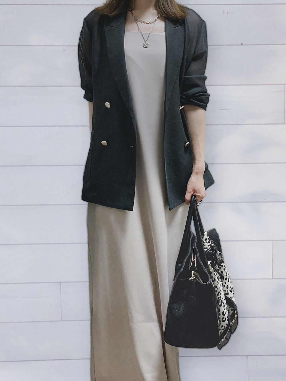 ワンピースにジャケット羽織るスタイルが最近のお気に入りです♡ これにスニーカー履いてました👟