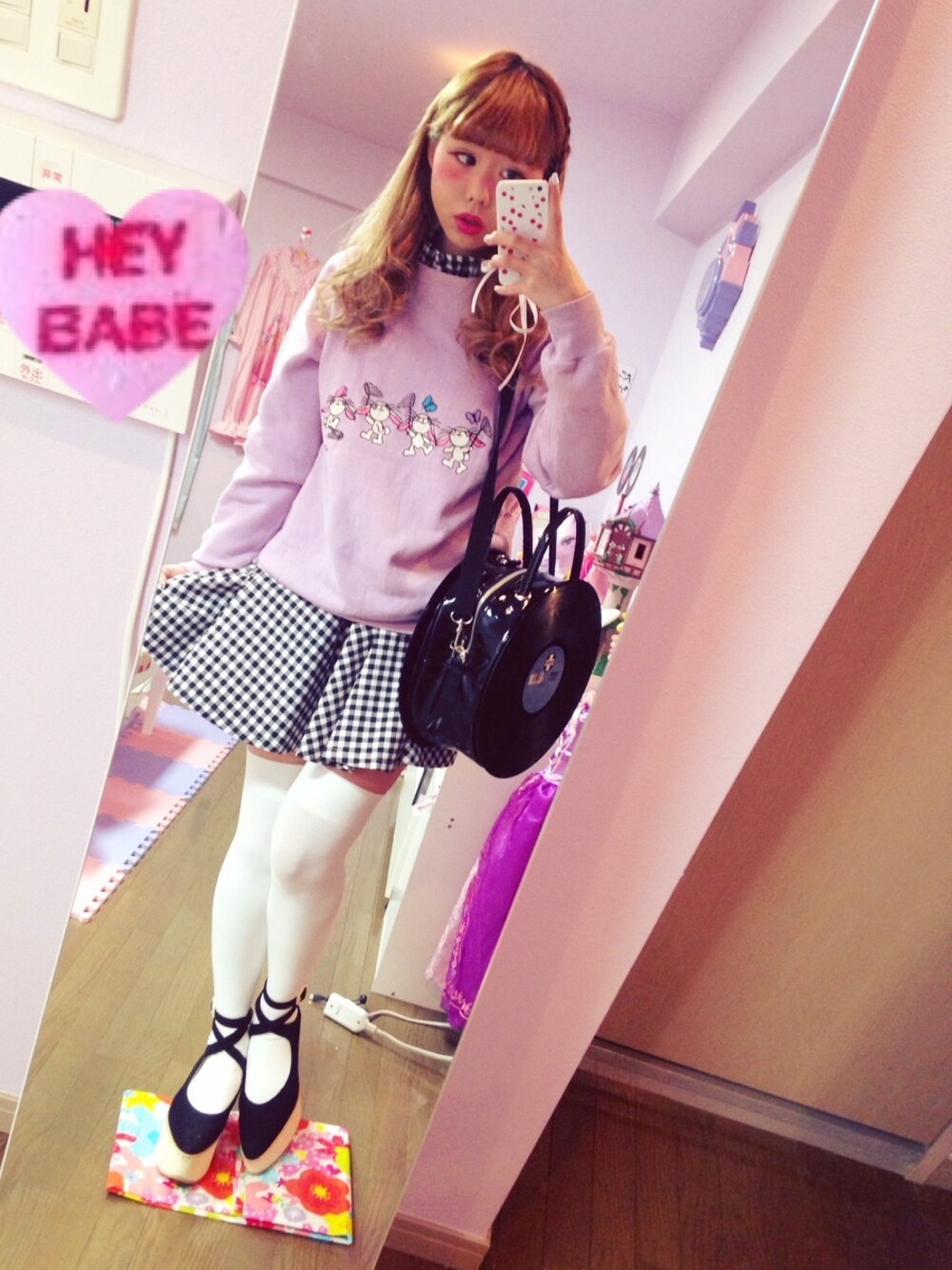 パープル系のスウェットを着用したレディースの春コーディネートの1枚目の写真