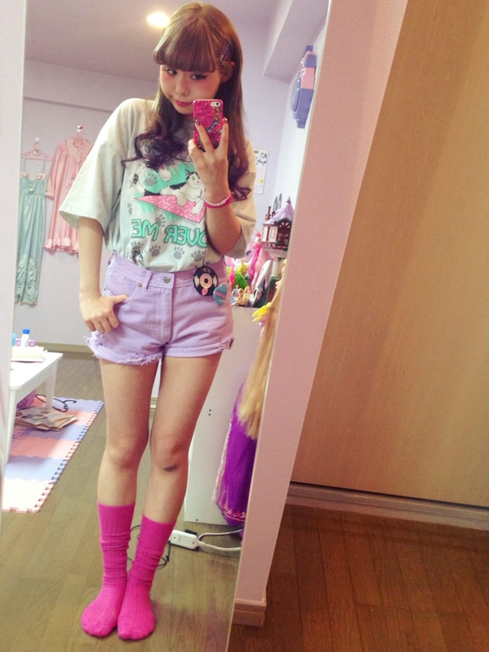 ピンク系のソックス/靴下を着用したレディースの春コーディネートの1枚目の写真