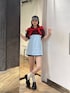pee企画 ラガーシャツのブルー×ブラウン♡ トレンドカラーのラガーシャツをミニ合わせで ワンピースっぽく着こなしてみたよ♪