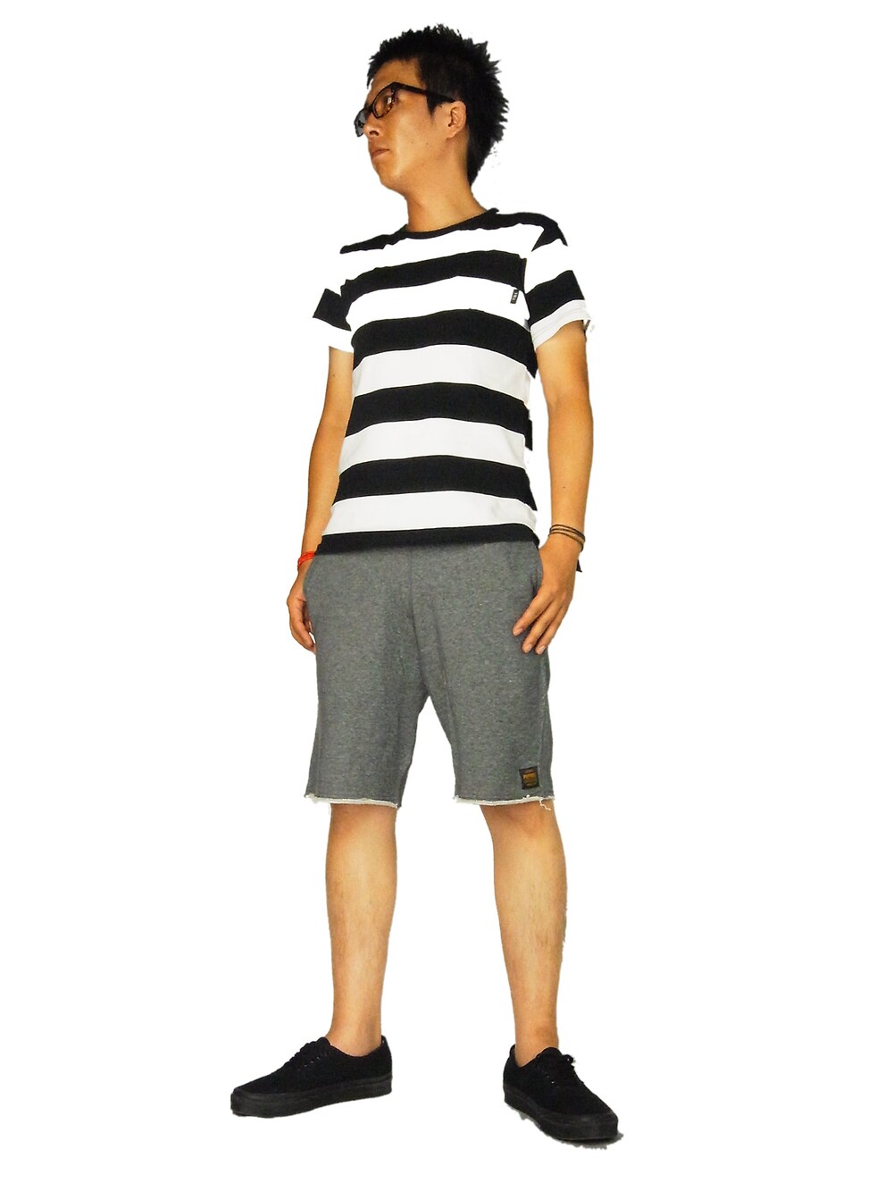 THE HIGHEST END ×DEFSTEEZ. W NAMEスウェットショーツにボーダーTEE、TON-UPでコーディネート。 ◆スタッフ着用 サイズ(身長167cm 57kg)◆ TOPS Sサイズ PANTS Sサイズ