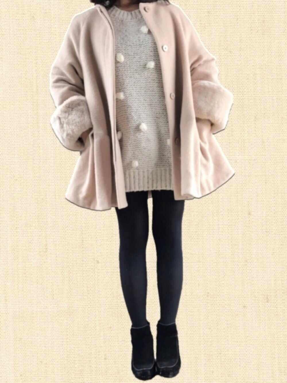 SAORI*のステンカラーコート「ファースリーブAラインコート」を使ったコーディネート