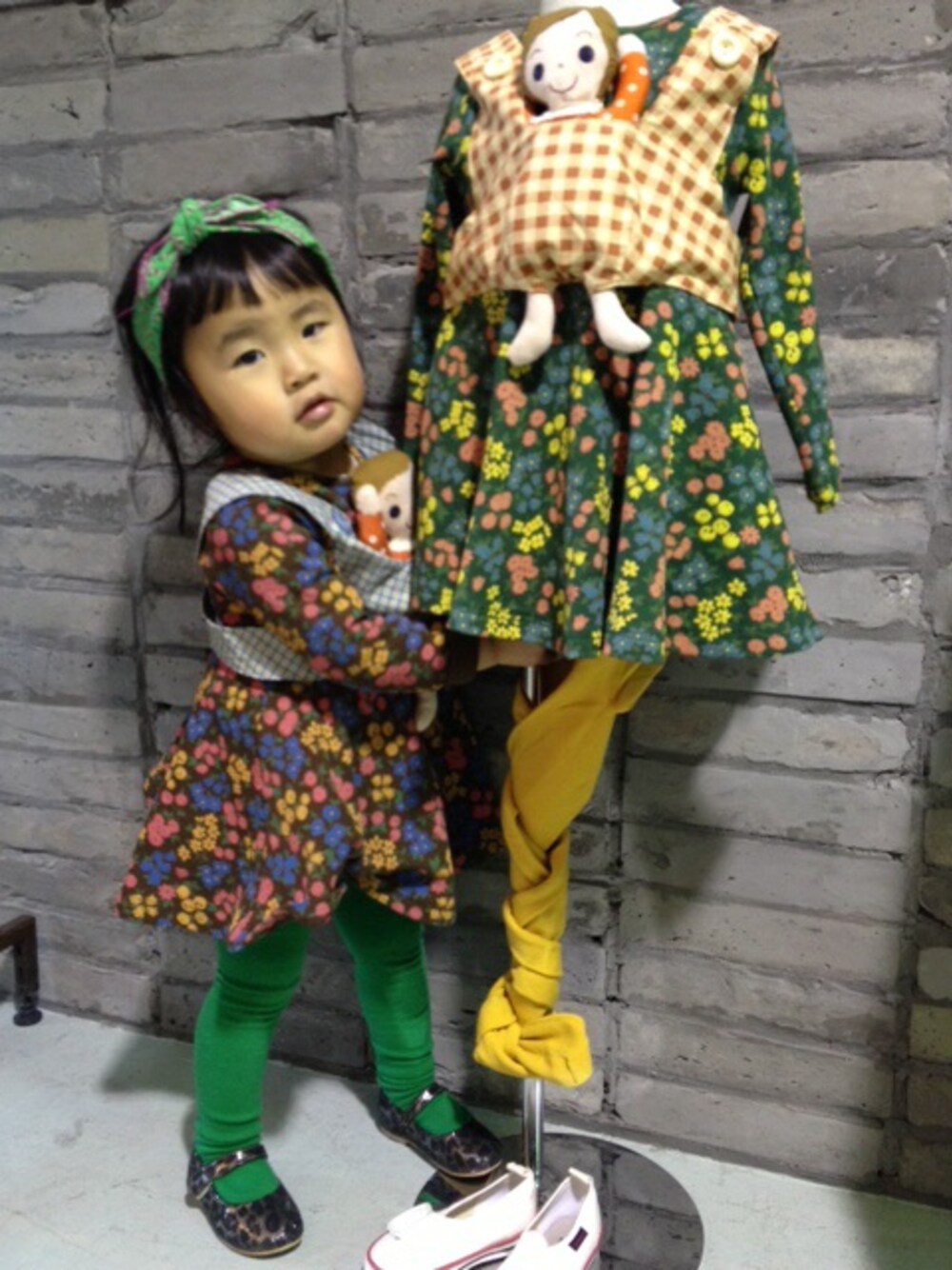 花柄タグに乗っかり中なので更新続きます すいませーん! 娘2歳の時の花柄コーデ^ ^ 抱っこ紐がくっついてるワンピ❤️
